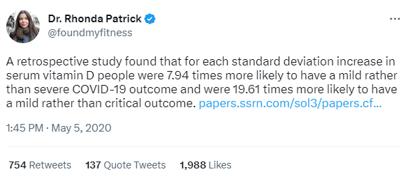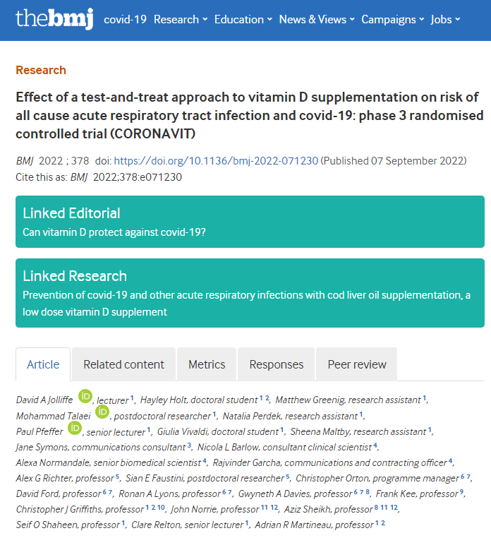 Therefore, scientists conducted two large, rigorous, randomized controlled trials to address this question for COVID in particular: does vitamin D prevent the disease or make it better?
