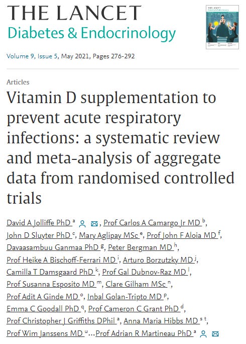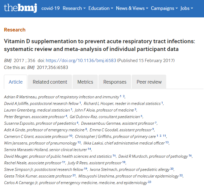 But, some data from two meta-analyses of randomized controlled trials by Adrian Martineau did suggest a modest benefit (10%) to vitamin D for acute respiratory diseases.