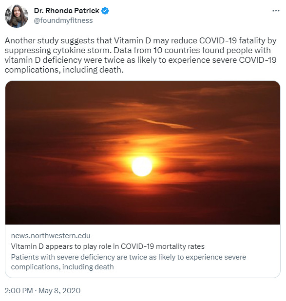 In other people, say, those who have not been vaccinated or with very low levels of vitamin D, supplemental vitamin D may help prevent COVID.