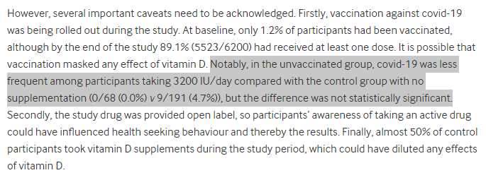 It is thought that vaccination may have masked the effect of vitamin D on COVID, plus many people in the control group also took vitamin D supplements.