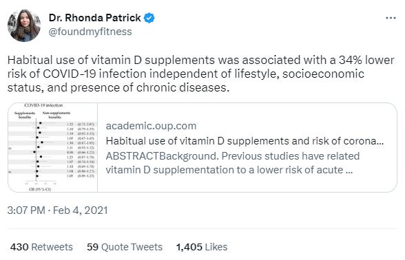 Lots of hype from early in the pandemic suggested that vitamin D might have a dramatic impact on COVID-19 outcomes.