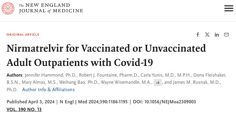 Cue a newly published randomized controlled trial, completed by Pfizer two years ago but left unpublished until now: Paxlovid does not help with COVID-19 after all [2].