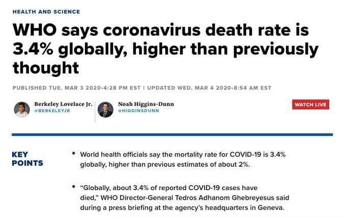 The World Health Organization was not much better: it reported the case fatality rate as 3.4%.