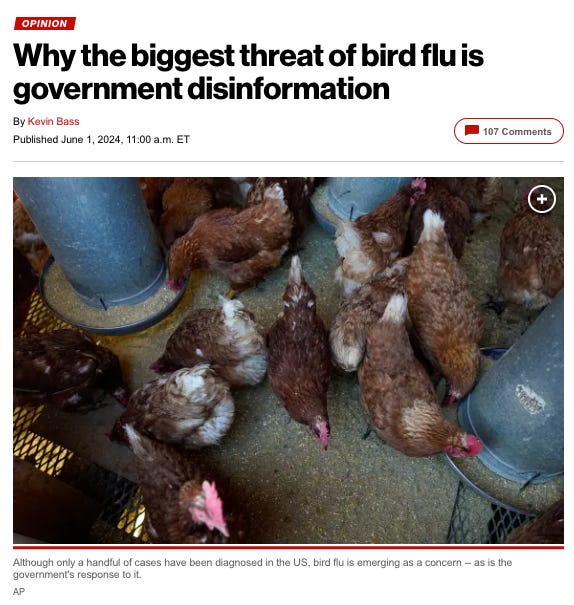 We should be incredibly alarmed about the path that is being taken with bird flu--not just with the virus but with the communication about that virus. We seem to be headed down the same exact path--having learned nothing--that we headed down during Covid.