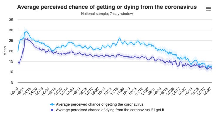During Covid it was even worse. By March, Americans believed that the death rate was 1-in-4 from Covid.