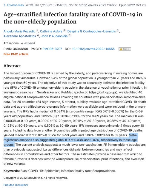 COVID death rate in 2020 for people younger than 70 was 0.07%.