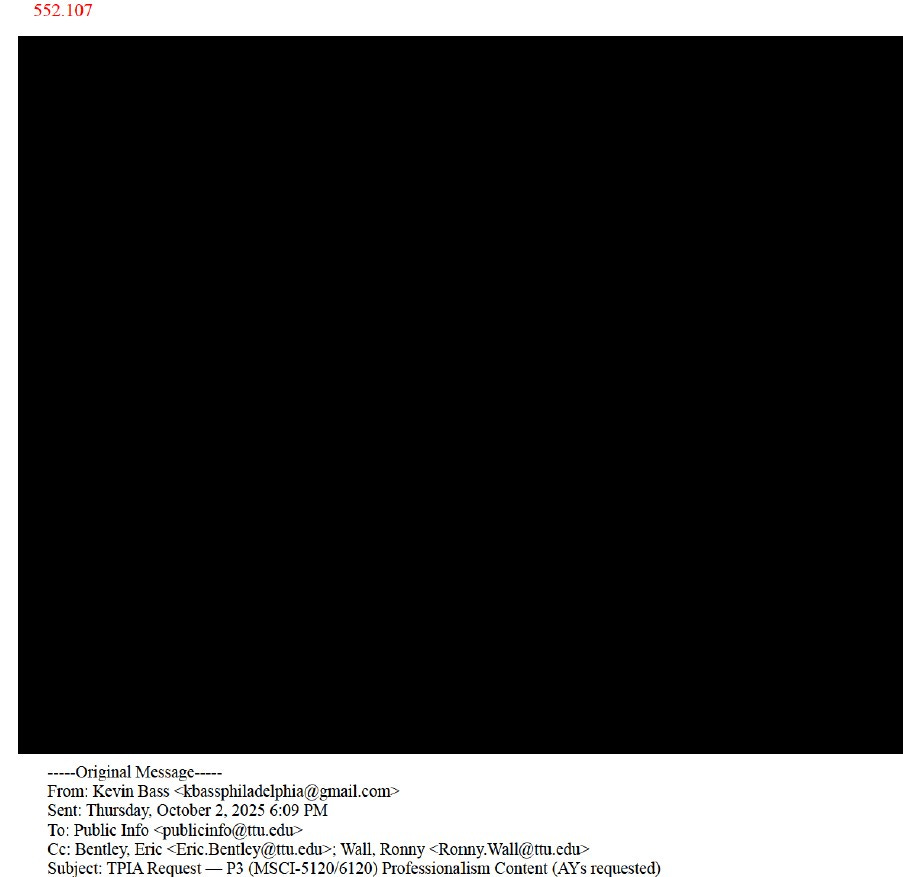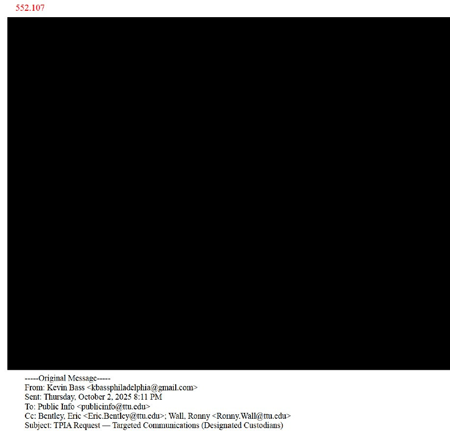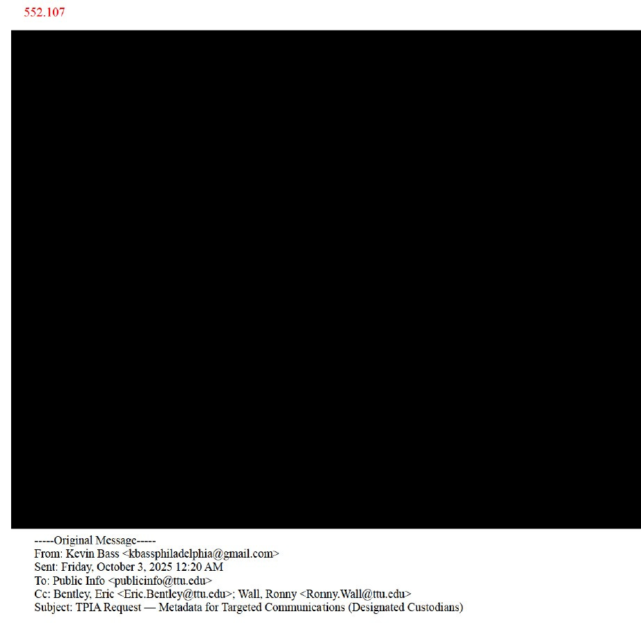Since October, I have also engaged in a lengthy dispute with Texas Tech–through FERPA–to gain access to all of my educational records, which I am entitled to according to federal law.