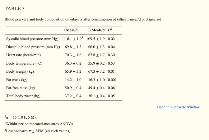 What this means is that the bodies of participants really did not like the one-meal-per-day regimen. The body is well-designed to utilize energy earlier in the day and poorly designed to do it in the evening.